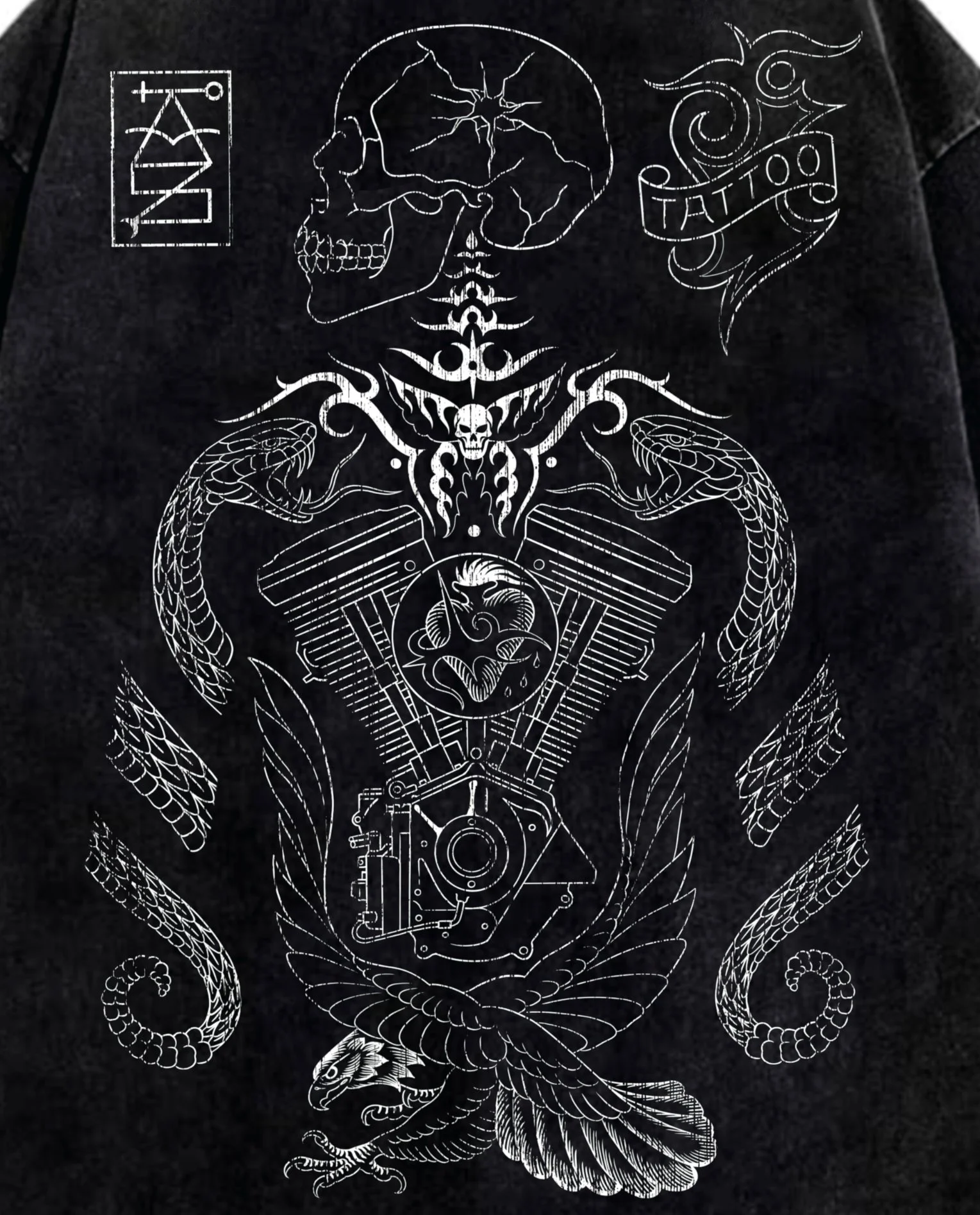 During the next 7 years, I enjoyed travelling and guest spotting. I left the Okey Doke to embark on a year-long motorcycle circuit around Europe with my tattoo gear in tow. After that year, I decided to leave Toronto and move to Montreal where I worked at Bait & Schlang tattoo. It was an incredible experience to work with such great talent, which in turn, heavily influenced me to reach a new level of expertise in my craft.